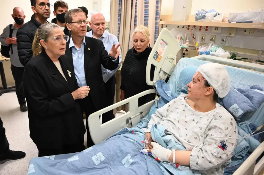 زار الرئيس إسحاق هرتسوغ المصابين في المركز الطبي هداسا-عين كارم بالقدس وموقع الدمار في بيت شيمش.